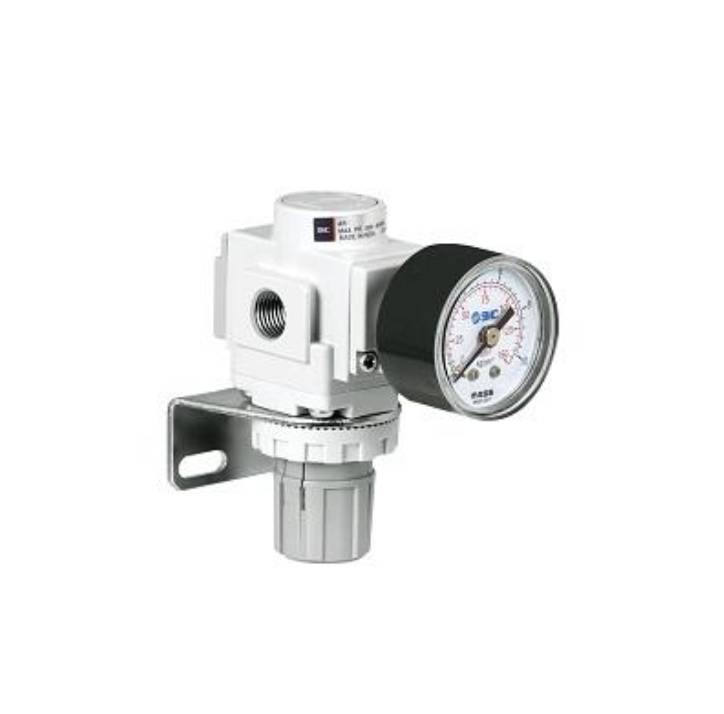 Technical Specifications:- Product Type - Regulator Port Size - 1 inch Pressure Gauge - Round Type Pressure Gauge Bracket - Yes Pipe thread Product Type - Rc Maximum Operating Pressure - 1.0 Mpa Fluid - Air Features:- 1) Wide Set Pressure Range (0.05 MPa to 0.85 MPa) 2) RoHS Compliant