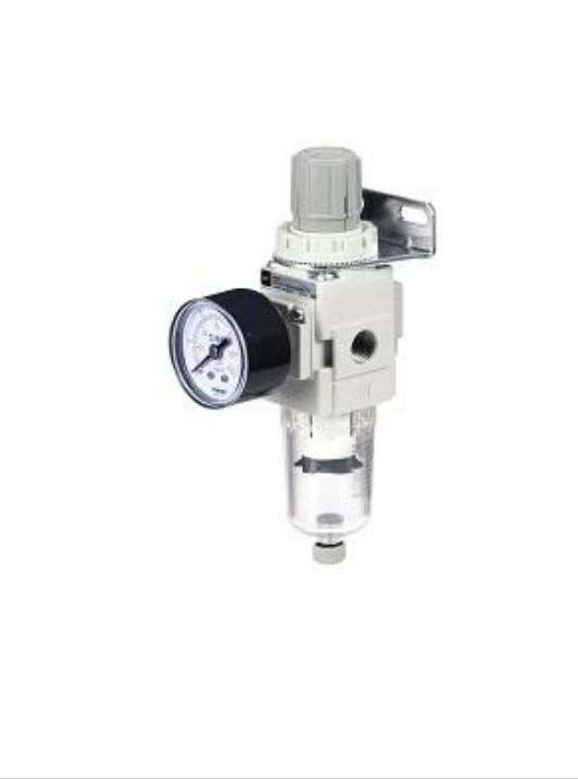 Product Type - Air Filter + Regulator Port Size - 3/8 inch Pressure Gauge - Round Type Pressure Gauge Pipe thread Product Type - Rc Nominal Filtration Rating - 5µm Maximum Operating Pressure - 1.0 Mpa Fluid - Air Features:- 1) Wide Set Pressure Range (0.05 Mpa to 0.85 Mpa) 2) 360˚ Visibility and Corrosion-Free Bowl 3) Easy Replacement of Filter Element 4) RoHS Compliant